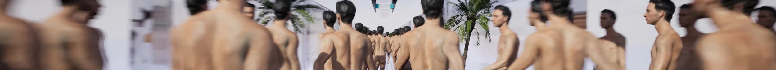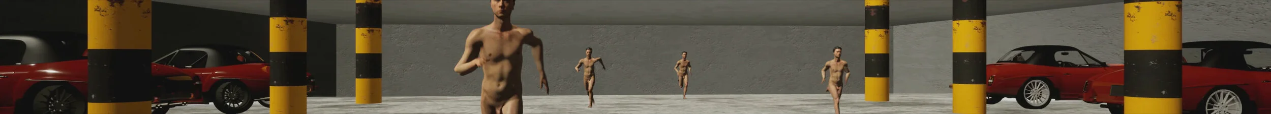As a team, we all believed that concept comes first. Whatever the outcome, our piece must have a story behind it. We ideated based on our common interests in digital capitalism and how virtual reality is re-shaping humanity. After many iterations, we decided to create an immersive experience that addressed how technology is replacing and affecting our physical world by using a nude protagonist as a representation of the dichotomy between body cult, while at the same time neglecting reality. Our idea would be realized through one performer running on a treadmill in a VR headset in front of the screen. The performer's point of view was presented on screen where the audience would see him running through different virtual spaces while competing against copies of himself.